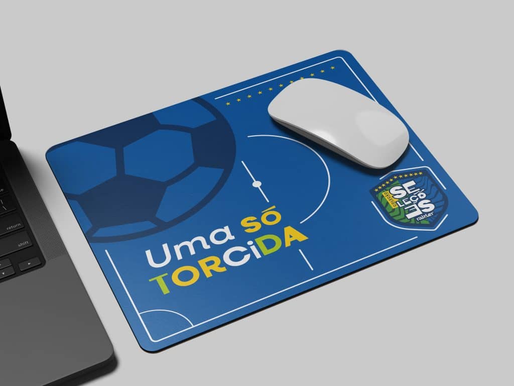 O mouse pad temático, por exemplo, é um item de uso diário em ambientes corporativos. Durante a Copa, ele mantém o clima do campeonato presente na mesa de trabalho, mesmo fora do horário dos jogos. É um brinde discreto, útil e com alta taxa de permanência.