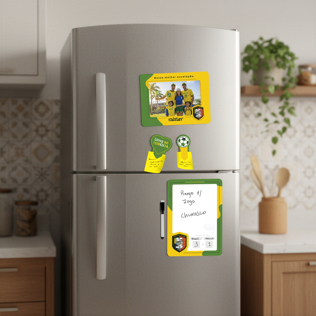A lousa magnética personalizada oferece ainda mais possibilidades. Ela pode ser usada para anotar horários de jogos, resultados, palpites ou até compromissos ajustados por causa da Copa. Em escritórios, costuma virar um ponto de interação entre equipes. Em casa, ajuda a organizar a rotina durante o período de jogos.